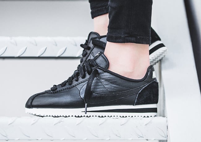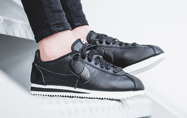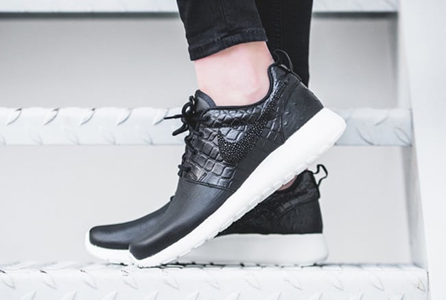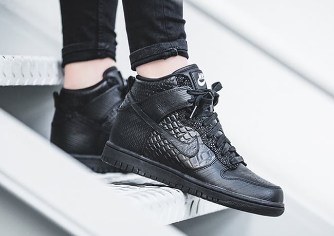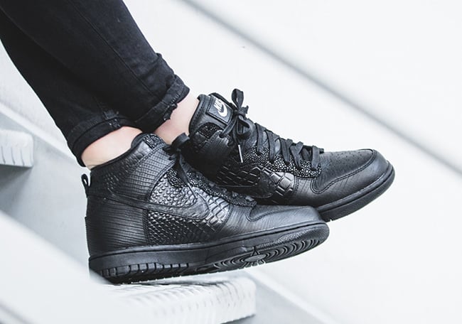 Included in the collection is the Nike Dunk High, Air Max Thea, Cortez and Roshe One. They all have a similar look which is dressed in all Black while constructed with leather. The highlight to most would be the crocodile embossed across the uppers. With the exception of the Dunk High, the other models will feature White on the midsole which extends across the outsole.