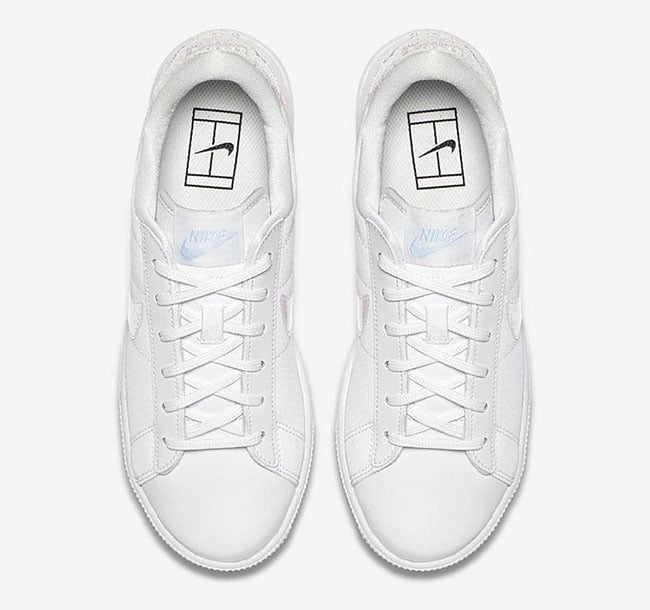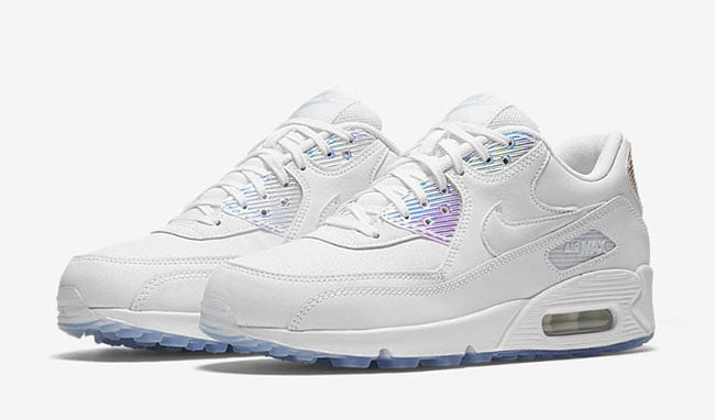 Nike will include four different models in the โIridescentโ Pack. Those silhouettes are the Nike Air Force 1 Low, Air Force 1 High, Tennis Classic and the Air Max 90. The four releases will share a similar look while having White leather through the uppers and the same hue through the midsole. The highlight is the Iridescent used which either lands on the Swoosh or heel. Finishing the look, three out of the four will have a Blue translucent outsole.