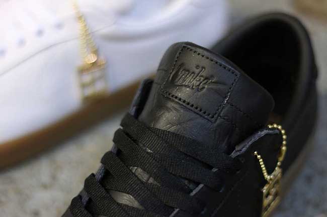 Both will feature leather uppers with one coming in white and the other in black. Updated by the use of NikeCourt branding on the insole and gold hangtags, the shoes are then finished off with a gum midsole that drifts through the sole.
