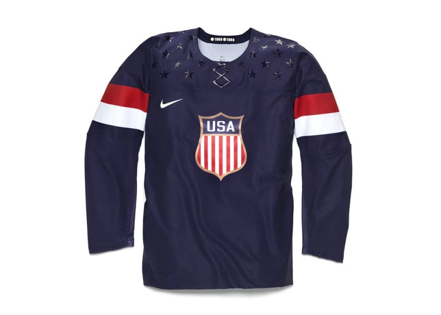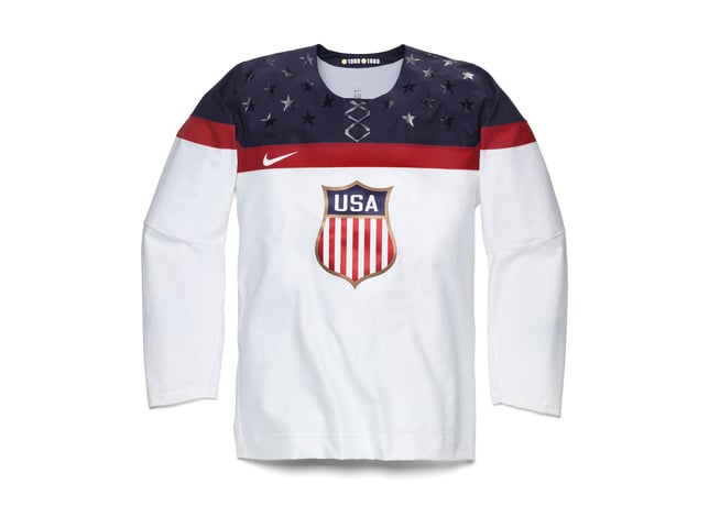 The 2014 Nike USA Olympic Hockey Jersey fuses USA Hockeyโs rich history and tradition with the performance needs of todayโs athletes. Decades of design delivered the inspiration to create a lightweight jersey with distractions removed and range of motion maximized.