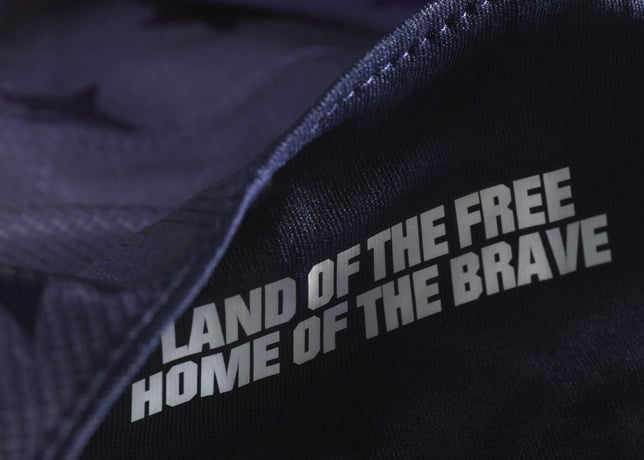 The jersey draws inspiration from the pride of competing for Team USA by amplifying theย American Flag aestheticย through matte/shine stars on the shouldersย and bold striping. The patriotic and inspirational messageย “Land of the Free, Home of the Brave” can be found on the inside neckline.