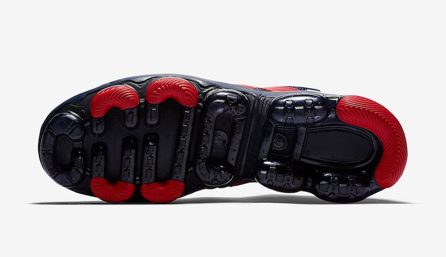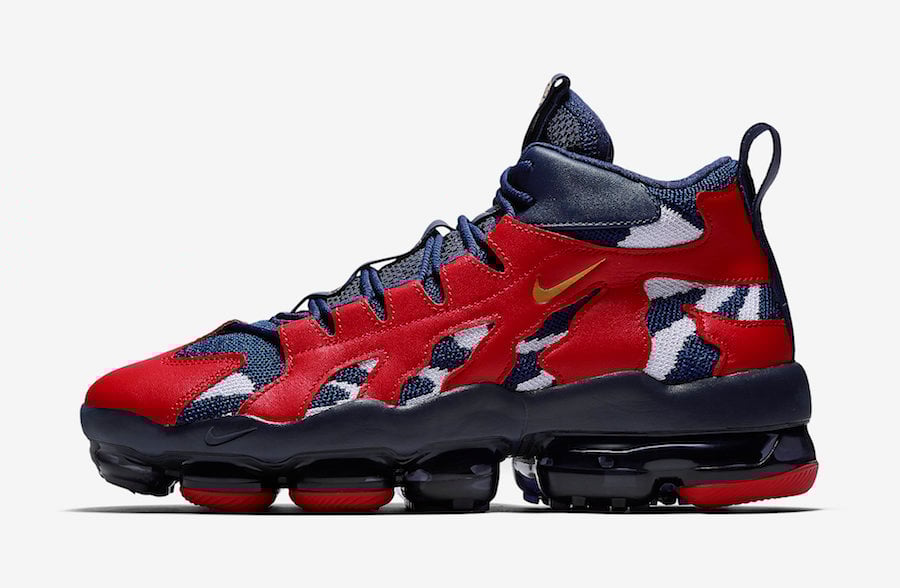 Featuring a Midnight Navy, Metallic Gold and Gym Red color combination. Looking closer you can see the use of Navy and White Flyknit on the base while Red leather lands on the overlays. In addition we have Gold used on the mini Swoosh logo, tongue and insoles. Other details includes Navy across the VaporMax unit and Red hinted on the outsole.