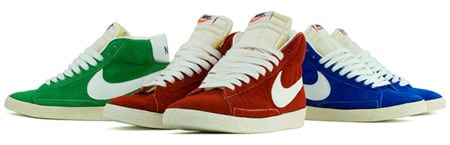 Nike’s Vintage Blazer High can now be found at retailers including Long Beach boutique, Proper. The Blazers are given an old school feel with their nylon tongues, suede and discolored midsole as if they were found in a basement from several years ago. Although the vintage name is found in the title of these Blazer Highs, they don’t appear as worn as the Vintage collection of Dunk Highs that sported creased toe boxes, yellowing and normal wear and tear. Get the green, red or blue pair now at Nike accounts like Proper.ย