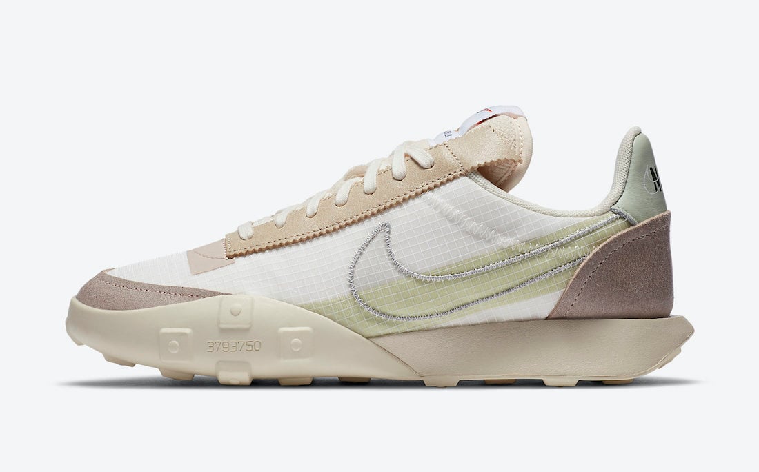 Dressed in a Pale Ivory, Muslin and Jade Aura color combination. Looking closer this Nike Waffle Racer comes constructed with ripstop on the upper while leather and suede is applied to the overlays Following we have stitched Swoosh logos on the panels and a waffle rubber outsole.