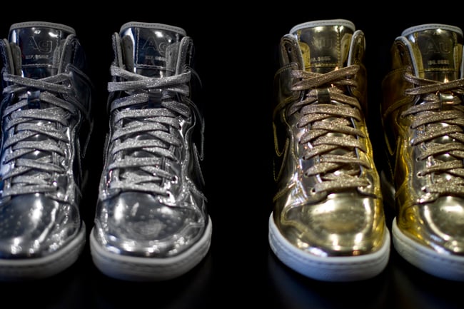 As many of our female readers can attest to the popularity of the Nike Dunk Sky Hi, this collection of high-top wedge sneakers features your choice of either a metallic gold or silver style which adds in tonal branding, glittery laces, and contrasting soles for a complete finish.