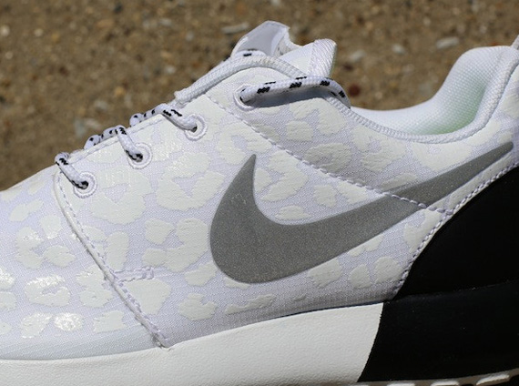 Available right now for all the lady sneakerheads is this dope pair of “Glow-in-the-Dark Leopard” Nike WMNS Roshe Run Premiums. Fully equipped with a simple white/black color scheme, all of you lady sneakerheads will definitely notice the tonal leopard print that flows throughout the shoes ripstop upper. In case that isn’t enough, the addition of a split-color midsole serves as a nice compliment to the leather heel cup. Continue reading after the jump to check out a detailed look and be sure to head over to Oneness right now to place your orders.
