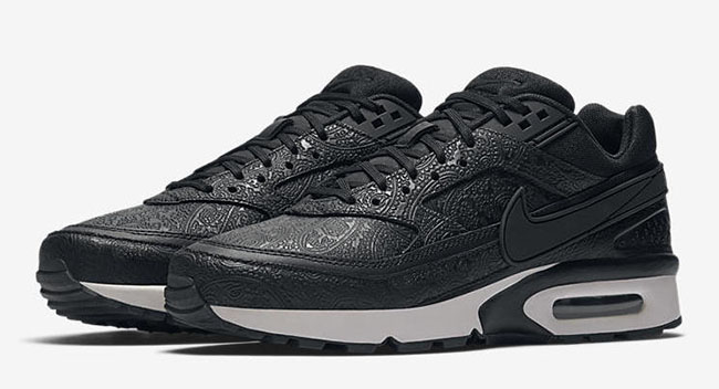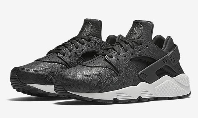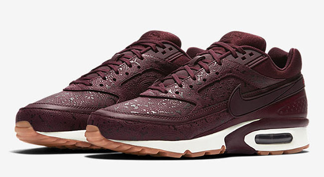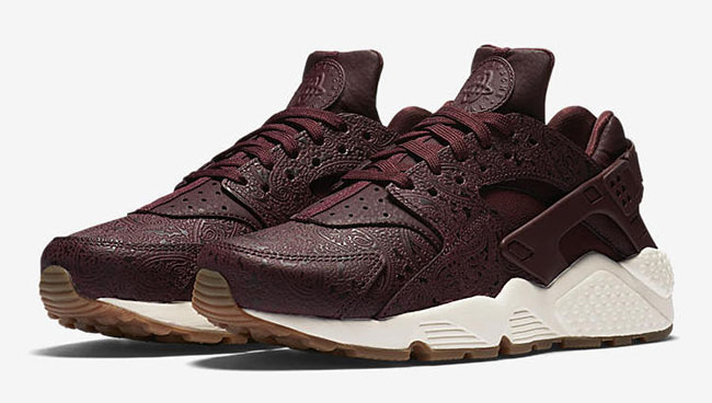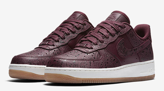 This new collection for women will feature the Nike Air Huarache, Nike Air Max BW and Nike Air Force 1 Low. Two color options will be available for each model which includes Night Maroon or Black. In addition, the trio will utilize Paisley patterns embossed on the uppers. All the pairs will have a White midsole while the Maroon features a Gum sole and the Black pair will come with a Black outsole.