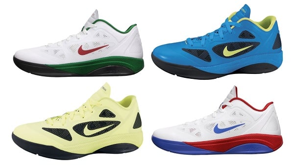 If you’re a quick, slashing guard with a drive-to-the-basket game, this might be the shoe for you. Or for those looking for a Hyperfuse upper on a low cut silhouette, the Nike Zoom Hyperfuse 2011 Low will be available this summer in 5 starting colorways. The Hyperfuse 2011 Low features it’s signature Hyperfuse upper, phylon midsole, low cut ankle collar and solid rubber outsole. Make sure you pick these up for your summer game this July.