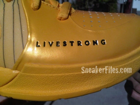 In addition to all of the Nike Sportswear x LIVESTRONG kicks we’ve seen, Nike Basketball created their own all-yellow rendition of the Nike Zoom Kobe IV (4) LIVESTRONG PE. Inspired by world renowned cyclist Lance Armstrong, the high performance hoops shoe features a patent yellow Swoosh and toe. Black Flywire strands lend support across the midfoot and Armstrong’s “LIVESTRONG” ethos is inscribed on the lateral toe. There is no release planned for the Nike Zoom Kobe IV LIVESTRONG PE, but we’ll update if anything comes to the light.