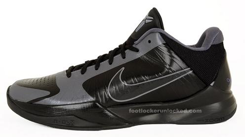 Kobe Bryant and his Los Angeles Lakers are getting everything that the Oklahoma City Thunder can possibly dish out during this first round NBA playoffs match-up. To bounce back, it looks as though the defending champions will have to dig deep within themselves and use every possible advantage, including perhaps even the Black Mamba’s renowned Nike Zoom Kobe V. Pictured here, however, is a black/dark grey-varsity purple Nike Zoom Kobe V that will release in July, just after the NBA playoffs are done. So until then, enjoy more pictures of this upcoming Nike Zoom Kobe V colorway after the jump, and continue to enjoy a riveting series between the NBA giants and the league’s new generation.