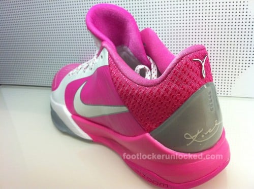 This passed Saturday, many of you might have been present at one of several House of Hoops locations nationwide when those Nike retailers began selling the latest player exclusives to release of the Nike Zoom Kobe V and Lebron Soldier IV. This coming Saturday September 18, another pair of special edition Nike Zoom Kobe Vs and Lebron Soldier IVs will see the light of sale. Pink and white pairs of each signature Nike basketball sneaker were designed in honor of the Kay Yow WBCA Cancer Fund, with October- national breast cancer awareness month- being just around the corner. Taking a look also at the Kay Yow WBCA Cancer Fund logo on the heel of each shoe, let us know which overall design you would say tickles your fancy the most.