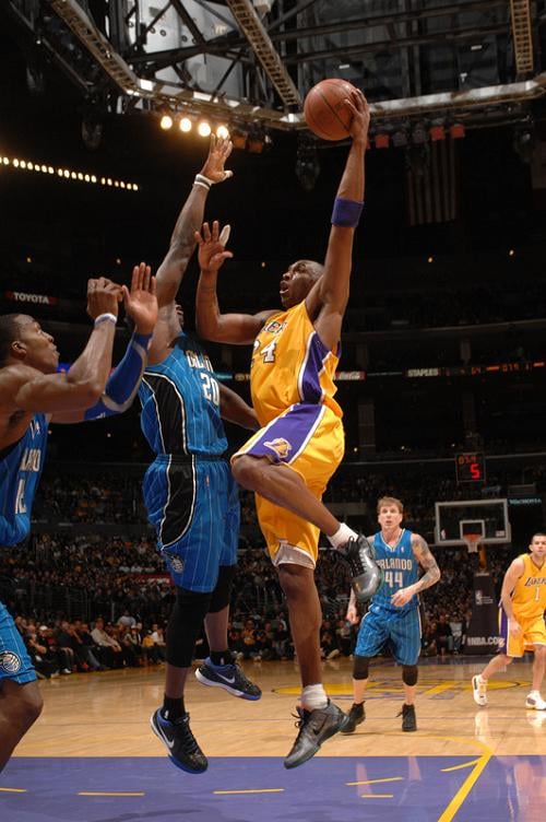 Yesterday was Martin Luther King Jr. Day- a day in which the life, mind, and accomplishments of such a powerful Civil Rights Movement leader are especially honored. Although the Los Angeles Lakers did not take the day off, they sure helped in Nike’s own form of paying tribute to MLK Jr. While taking on the Orlando Magic in a rematch of last year’s NBA Finals, Kobe Bryant, Shannon Brown, Lamar Odom, and Derek Fisher wore pairs of the Nike Zoom Kobe V designed especially in remembrance of Martin Luther King Jr. Enjoy pictures of all four in action and wearing these special edition Nike Zoom Kobe Vs after the jump, and let us know what you think of the idea and colorway. IF any release information surfaces, rest assured we’ll announce it.