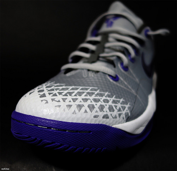 Equipped with an XDR (Extra Durable Rubber) outsole, this high performance basketball model hits the scene in a metallic silver mockup that blends together white and purple accents throughout. Adding in Kobe tongue branding and a white lace set, this model is finished off by a gradient purple Nike Swoosh.