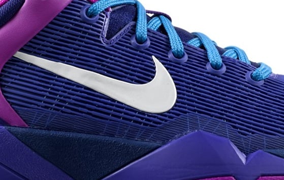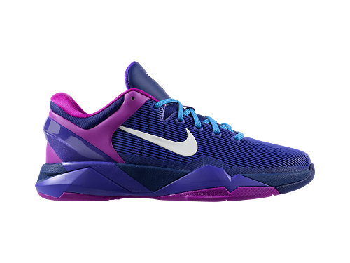Nike just dropped an all new colorway of the Zoom Kobe VII only available in Youth sizes. With a Deep Royal Blue upper, Metallic Summit White Swoosh & a Magenta outsole, heel collar and inner lining; this pair is one of the nicest of the released version thus far.