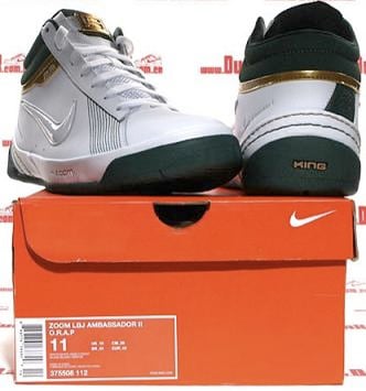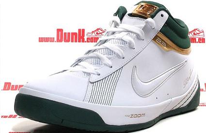 Nike and the Lebron signature series sneaker line are definitely FAR from strangers to the PE game. One particular colorway we often see on Lebron’s shoes is that of the Saint Vincent-Saint Mary high school LBJ used to play for. For example, in the middle of September we brought you a look at the Nike Zoom Lebron III done up in the green/white-gold. Now, the same color palette has been executed on this pair of Nike Zoom LBJ Ambassador II’s. This pair, however, is predominantly white, with green and gold only accenting the shoe. There is no official word of a stateside release, but how many of you are feeling these enough to jump at the first opportunity to cop? How does this pair of SVSM Lebron sneakers compare to others passed?