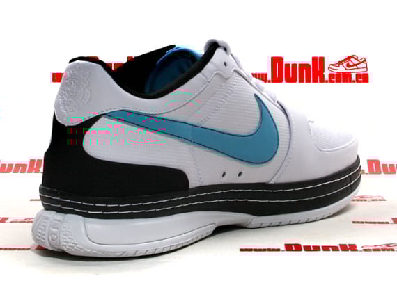 Though the Nike Zoom LeBron 6 (VI) Low has not been met with the same type of success as its higher cut counterpart, Nike Basketball continues to release new colorways in the low-top ZL6. This time around, the sneaker hosts a white upper with baltic blue accents on the swoosh and tongue tag, while black accents are visible via the mid-sole, inner lining, and heel. Another key aspect of this pair is the white contrast mid-sole stitching that gives this style a unique look. The Nike Zoom LeBron 6 (VI) Low – White/Baltic Blue-Black should be available at your local retailers in the coming weeks.