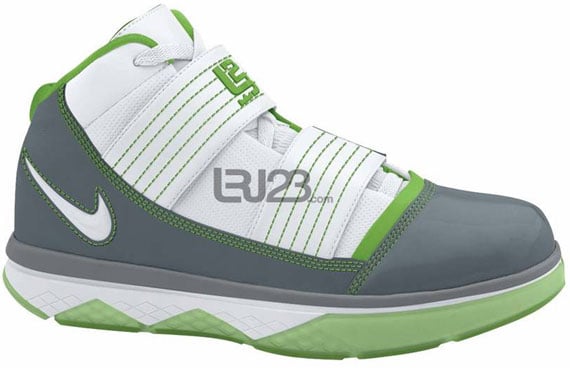 With the plethora of colorways that Nike has been releasing of LeBron’s very popular signature shoe, the Nike Air Zoom Lebron 6 (VI), it is easy to overlook any other of his models. Here we have the Nike Zoom LeBron Soldier III (3) in the “Dunkman” colorway. This grey and green colorway has been applied to other signature shoes of LeBron James, and it works just as well with this pair. If you play ball, be sure to check these out when they drop in April.