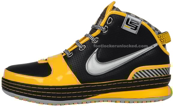 Lebron James and the Cleveland Cavaliers will take on the New York Knicks tomorrow, January 4, 2009. For that game, Lebron is breaking out a new colorway of his signature sneaker, the Nike Zoom Lebron VI. We previewed this “Taxi Cab” colorway of the ZLVI a while ago and we now have detailed pictures and information to share. This colorway is inspired by the averageย taxi cabs in New York which residents see on a daily basis. Featuring a black perforated leather upper withย yellowย patent leatherย accents and a metallic swoosh, this pair nicely imitates the typical taxi cab’s color scheme.