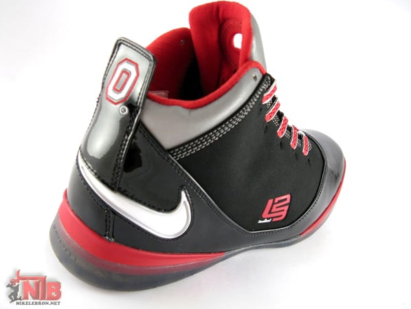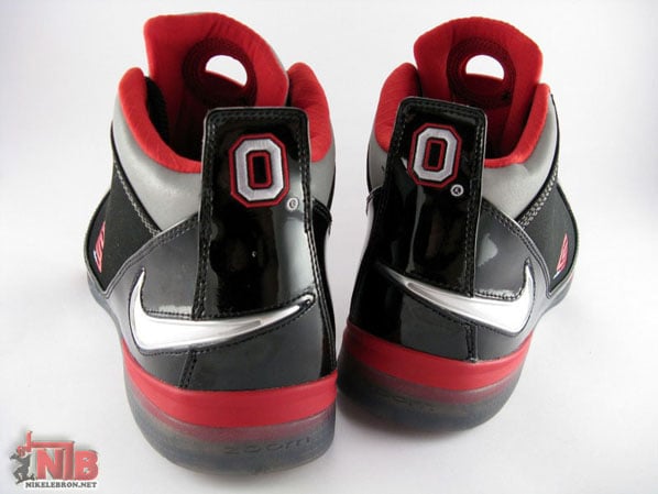 While a lot of attention is being directed toward the Nike Zoom Lebron VI (6), the Zoom Soldier II doesn’t look like its going anywhere anytime soon, this is evident by the Camo Edition seen only a few days ago and now this Ohio State Buckeyes edition. The Zoom Soldier II conforms to the teams colors and showcases the Ohio State “O” at the heel along with other notable details including the number 3 at the side and an icy outersole revealing a silhouette of Lebron James at the sole. The rest of the sneaker uses patent leather to go along with black, grey, white and red. Now available at the House of Hoops. Via NikeLebron.