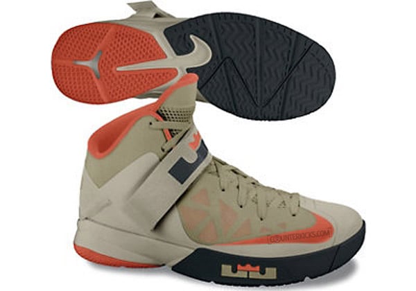 This upper takes design cues from it’s main counterpart, the LeBron 9, featuring a high cut, lightweight silhouette comprised of synthetic materials and Hyperfuse technology. The midsole also mimicks the 9’s design and also features a midfoot strap and 2 supersized LJ logos as well as giant forefoot Swoosh.