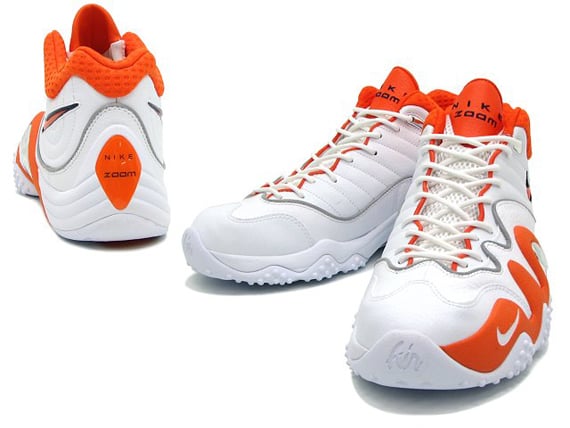 As part of Nike Basketball’s Spring 2010 collection, the Nike Zoom Uptempo V makes a release in a new colorway. The Nike Zoom Uptempo V (5) Premium comes in a white/orange blaze-midnight navy colorway, and uses a full white leather upper and white sole. The white is contrasted by orange blaze at the midsole, swoosh, and mesh inner lining, along with midnight navy on the tongue logo. These Uptempos are available December 21st online overseas, so if you can’t wait til next year, then you can cop ’em for the $167 price tag.