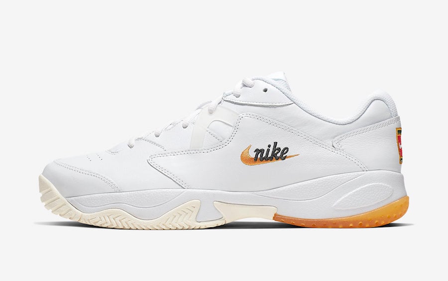 Utilizing a White premium leather across the upper while Black and Orange make for the Nike branding on the panels. On the heel Nike throws it back by using their classic Nike Tennis logo. On the insole we have the name of the shoe and a tennis ball done in multiple colors. Completing the look is a Gum and Sail translucent outsole.