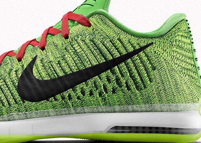 You can create your own ‘Grinch’ NikeID Kobe 10 Elite Low starting on December 22nd, 2015. While you can make them just in time for Christmas, you won’t receive them till well after the holidays which can sort of be a let down. Retail price will be $245. Below you can see an additional image showing an up close look.