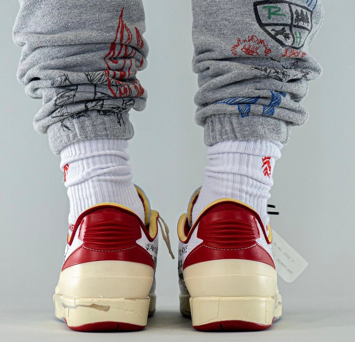 Update (7/17): We now have on-feet photos of the Off-White x Air Jordan 2 Low โWhite/Redโ via yankeekicks.