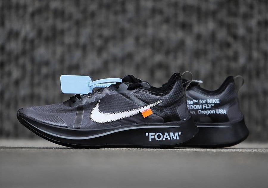 The two colorways of the Off-White x Nike Zoom Fly shown will release at select Nike retailers and online at Nike.com on November 28th. Once available the retail price will be $170. More images of the two can be seen by scrolling below.