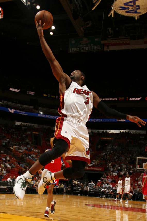 “Green Week” is currently underway in the NBA, and players are doing all they can to help. While some are rocking green headbands or socks, Dwayne Wade recently unveiled a white and green style of the Air Jordan 2010. This pair yields a white leather upper with green accents visible via the laces, inner lining, midsole, tongue, and the border around the midfoot window. With the recent news that the Air Jordan 2010 might be available on NIKEiD soon, would you customize a pair similar to the ones Dwayne Wade wore yesterday against the Philadelphia 76ers.