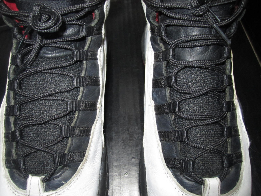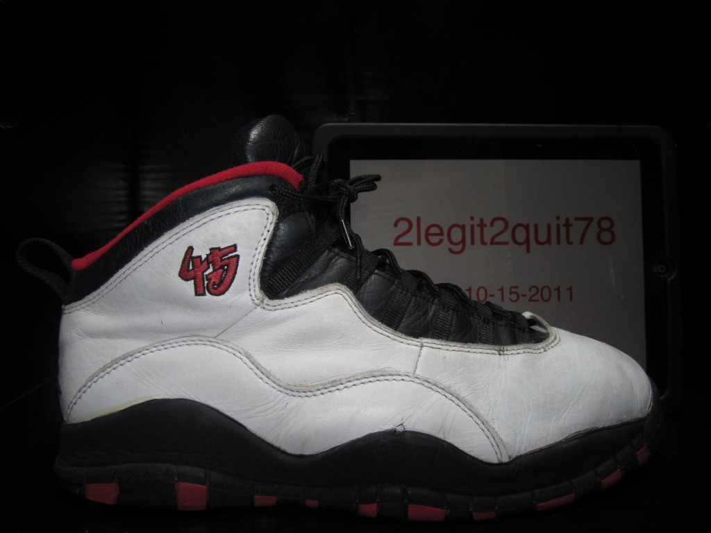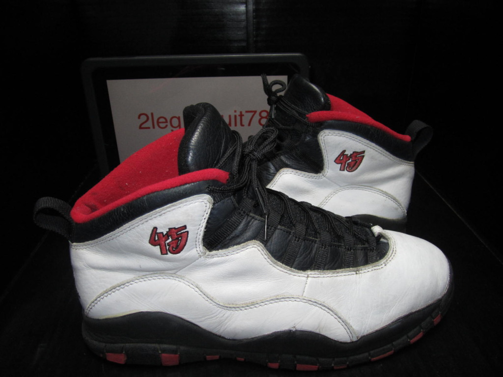 This particular pair has been said to have been worn by the man himself during his comeback after taking a short break from the NBA , which most of you may remember as if were yesterday. Donning the #45 on the ankle and featuring its original non-checkered lining, these are quite possibly one of the rarest AJ10โs in this colorway. If you look closely you can also see that this pair is missing the bungee styled straps on the tongue, pretty interesting if you ask meโฆ Iโd like to know why MJ didnโt have them featured as they helped keep the foot securely in place.