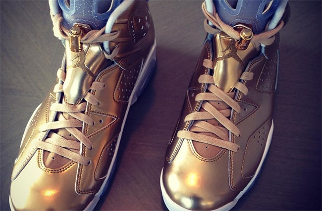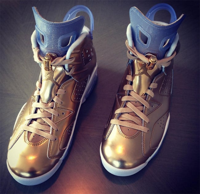 Update: We now have a detailed look at Spike Lee’s Air Jordan 6 ‘Gold Oscar Awards’ thanks to jdollasign84 and the_collection_miami. Don’t expect this pair to be a general release as they were made for Spike.