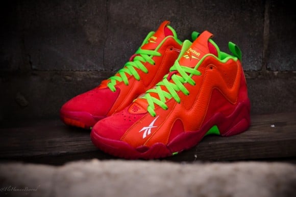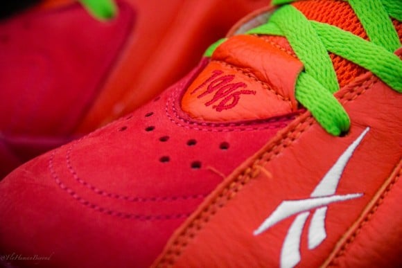 If you can recall, towards the later half of last month, we shared a couple of teaser photos in regards to the Packer Shoes x Reebok Kamikaze II “Remember the Alamo Remix”. Today, we have a full look at the shoes that have officially been dubbed as the “Chili Pepper” Kamikaze IIs. Fully equipped with the remixed chili pepper Reebok logo about both the tongue and heel, the shoes colorway is just as hot as the pepper itself. Flush with a fiery mix of color flowing about its full grain leather and red suede build, all of you sneakerheads will be able to add these joints to you collections Friday, December 13th. Continue reading after the jump to check out some sick angles of this upcoming collab and be sure to head over to Packer Shoes,both in-store and online, on the previously mentioned day to cop.