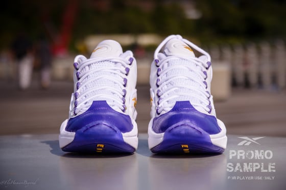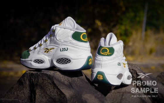 First teased on Wednesday, no one knew exactly what was to become of this collaboration as we were only presented with “Promo Sample” and “For Player Use Only” phases in black and white. As a complete turn around Packer Shoes presents the Reebok Question Mid in two PE colorways that celebrate Kobe Bryant and LeBron James. What will essentially be released to the public for the first time ever, each silhouette will display corresponding team colors – Kobe with the ’03 Lakers and LeBron an endorser of St. Vincent-St. Mary.