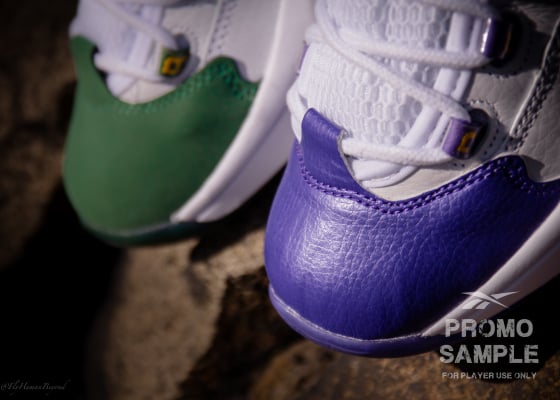 - Both the white-purple/gold AND the white/green/gold Reebok Question will be sold together as a pack.