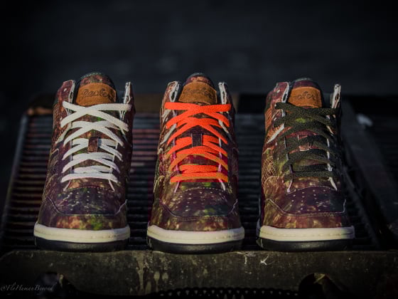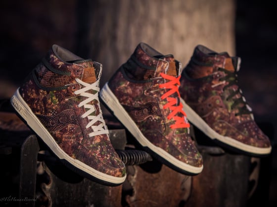 Displayed in full, the Saucony Hangtime Hi serves as the silhouette of choice to this stellar collaboration. Made from full-grain woodland camp leather uppers with a camouflage aesthetic, this high-top retro displays snakeskin detailing, olive green trim, cream midsoles, signature “Packer” tongue branding, and extra laces.