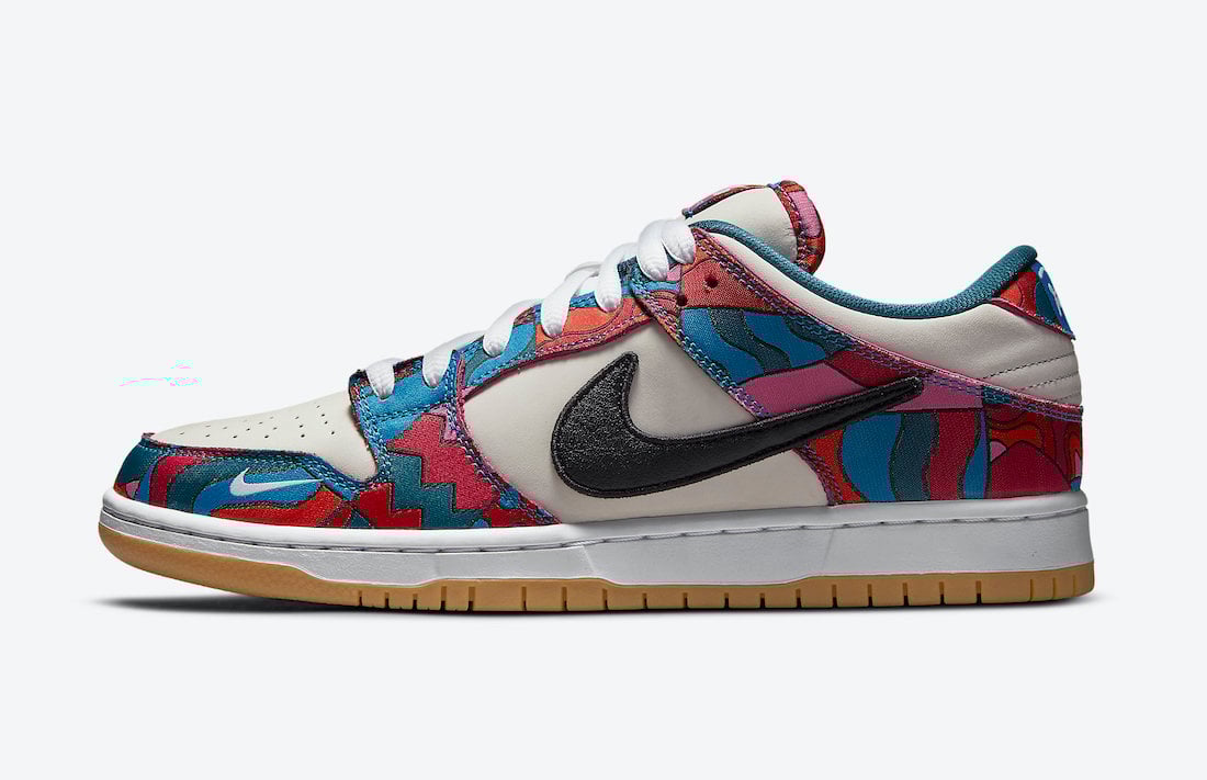The Parra x Nike SB Dunk Low will release at select skate shops and Nike.com on July 31st. The retail price is $110. Once we have more information, including a retail price, we will make sure to update you. You can also grab your size early at Goat and Flight Club. For now, scroll below for more images that will give you a closer look.