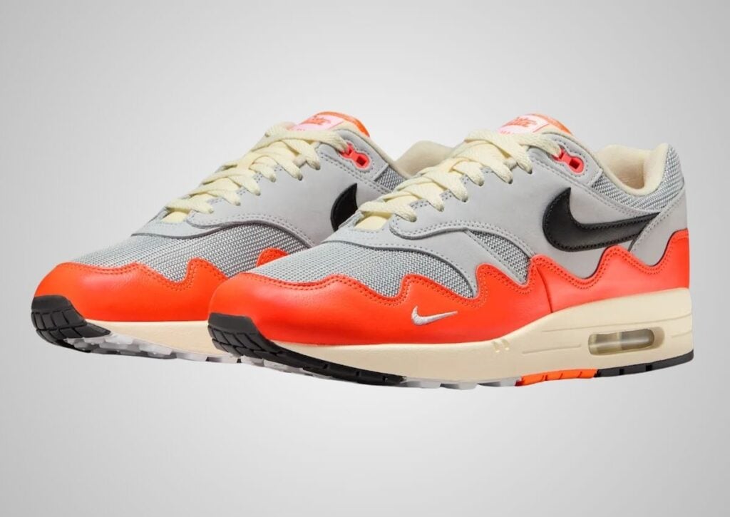 The “Hyper Crimson” Patta x Nike Air Max 1 is a solid addition to the boutique’s past releases. Patta brought back “Chlorophyll” in 2024 for their 20th anniversary, reminding everyone why the partnership matters in the first place. The “Hyper Crimson” takes that momentum and pushes it forward by reviving the wavy mudguard design that defined the 2021-2022 Waves series. The orange tones tied to Amsterdam and the Netherlands’ national football team lend the colorway cultural weight beyond aesthetics, and the Surinamese flag bracelet honors the co-founders’ heritage in an authentic, rather than performative, way.
