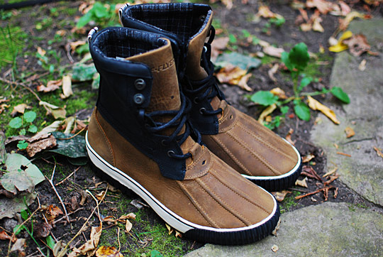 This new PF Flyers Andover Boot features a simple design in fuction and style in a duckbootย silhouette. This model is features in 2 colorways in various tones of Black/Red and Brown/Tan. The Andover Boot combines it’s weatherproof function with style in high quality leathers, flannel and textile uppers.