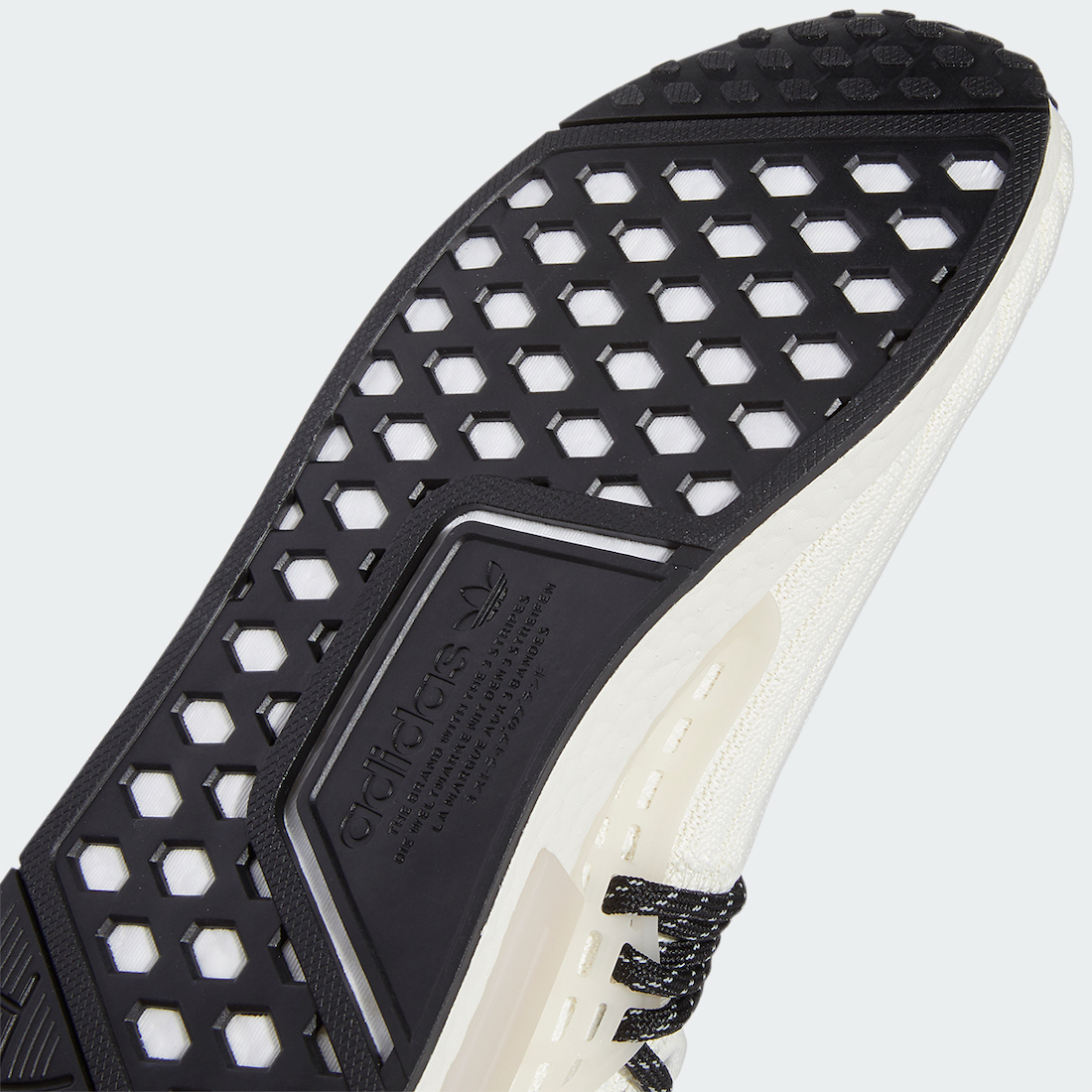 Looking closer, this adidas NMD Hu comes with Cream across the upper. However, instead of using the traditional mesh, the pair has a ribbed upper. Furthering the Winter vibes, down the tongue is the traditional inspiration message, but it’s done in Black chenille. Following, Blue and Pink accent, the front EVA pod overlay and heel while a hue of Brown covers the translucent lace cage. Finally, Black on the laces and rubber outsole finish the look.