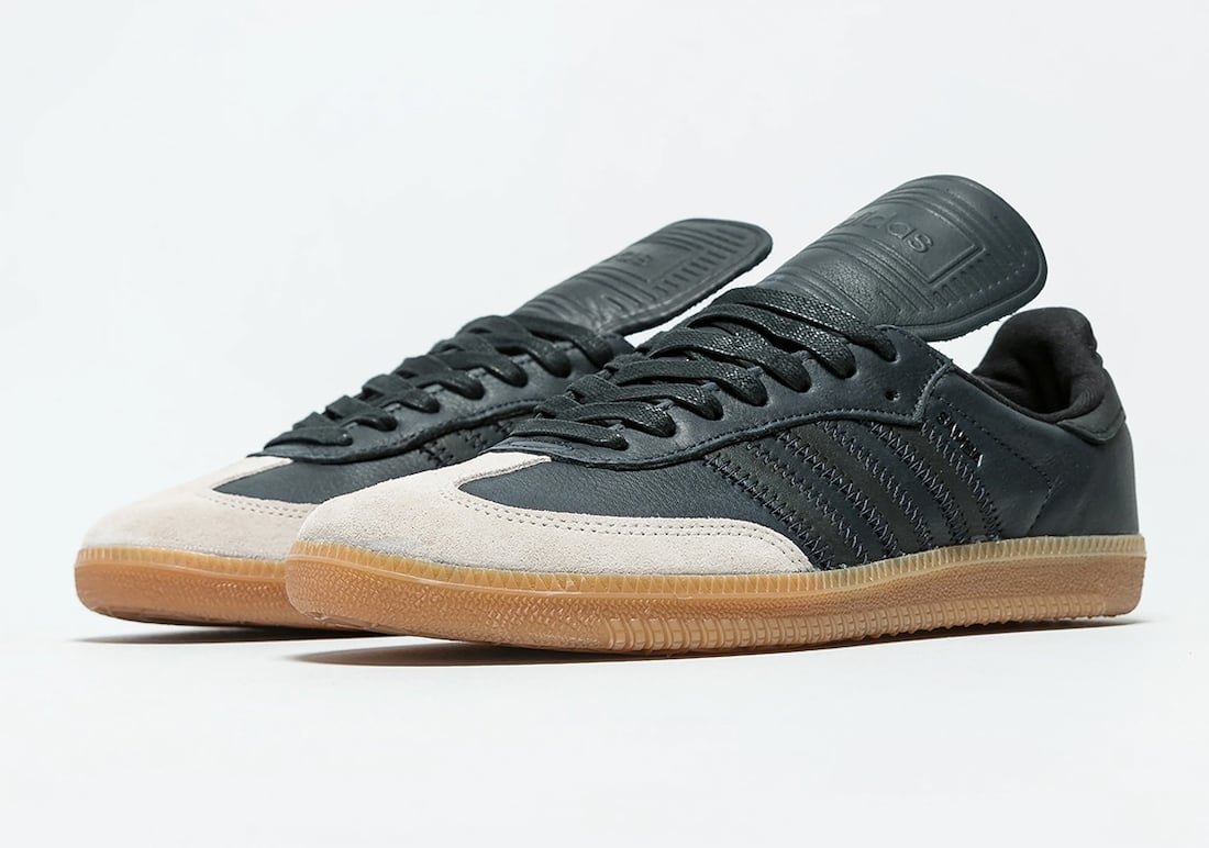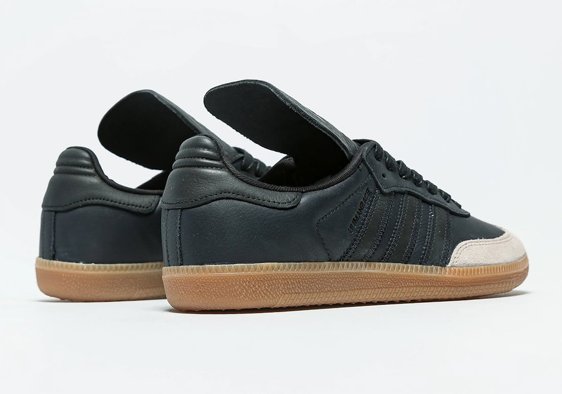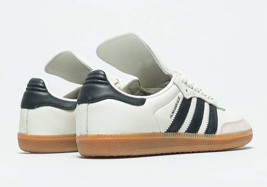 One pair comes dressed in Cloud White and Night Grey, while the second pair features a Night Grey and Core Black color combination. The two adidas Samba releases come constructed with leather, while suede lands on the overlays around the toe. Next, they feature a football boot tongue while โHUMANRACEโ is embossed on the right shoe. A Gum rubber sole finishes the look.