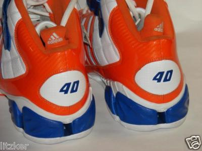 Journeyman drive the latest Mercedes Benz to practice; journeyman also get hit off with player exclusives. Kurt Thomas, no slight on the big guy, is the epitome of the voyaging NBA’er, peregrinating from team to team, collecting checks, making money, contributing to his team when necessary, and having a pretty good time with goldigging women at the club. (Jeff Garcia, didn’t T.O. call you gay? Hope you’re not too displeased!) Carmellas and Carmelos aside, KT is a member of the vaunted adidas Brotherhood. In ’06, the brand hit him off with a gorgeous white/blue/orange iteration of a3 Clutch Mid, a racing inspired shoe complimented by heel-oriented a3 struts creating a delightful feel underfoot. Comfortable and easy on the eyes. (I’m thinking Jeff Garcia again.) Thomas’s initials are stitched on the ankle strap, while his number 40 is inscribed on the heel. If you’re feeling the Clutch, head over to eBay where you can grab them here. Garcia’s wife not included.