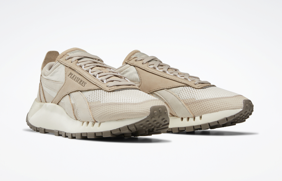Update 8/10: The Pleasures x Reebok Classic Leather Legacy will release on August 15th at pleasuresnow.com and on August 22nd at Reebok.com. Retail price is set at $100.