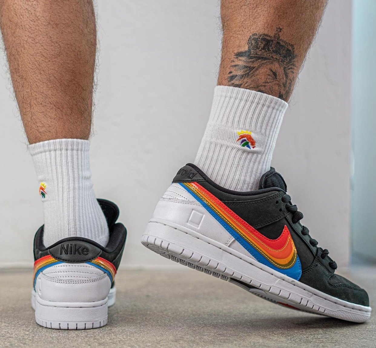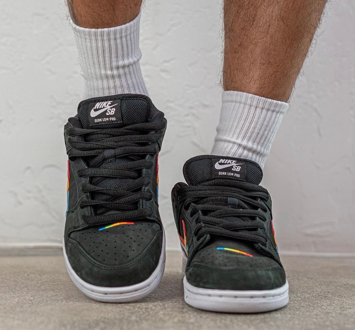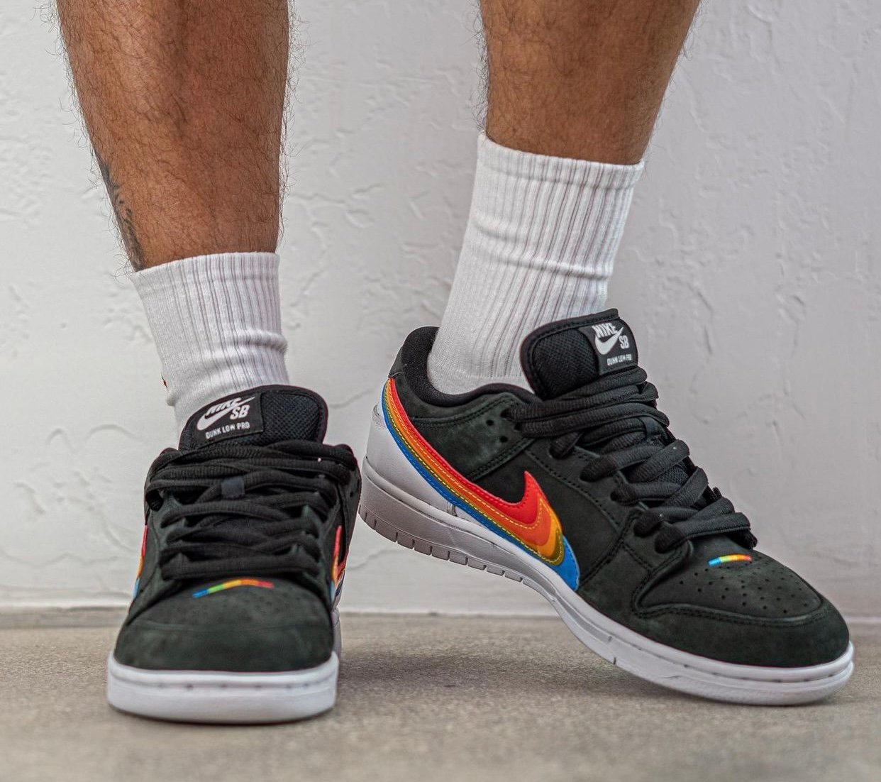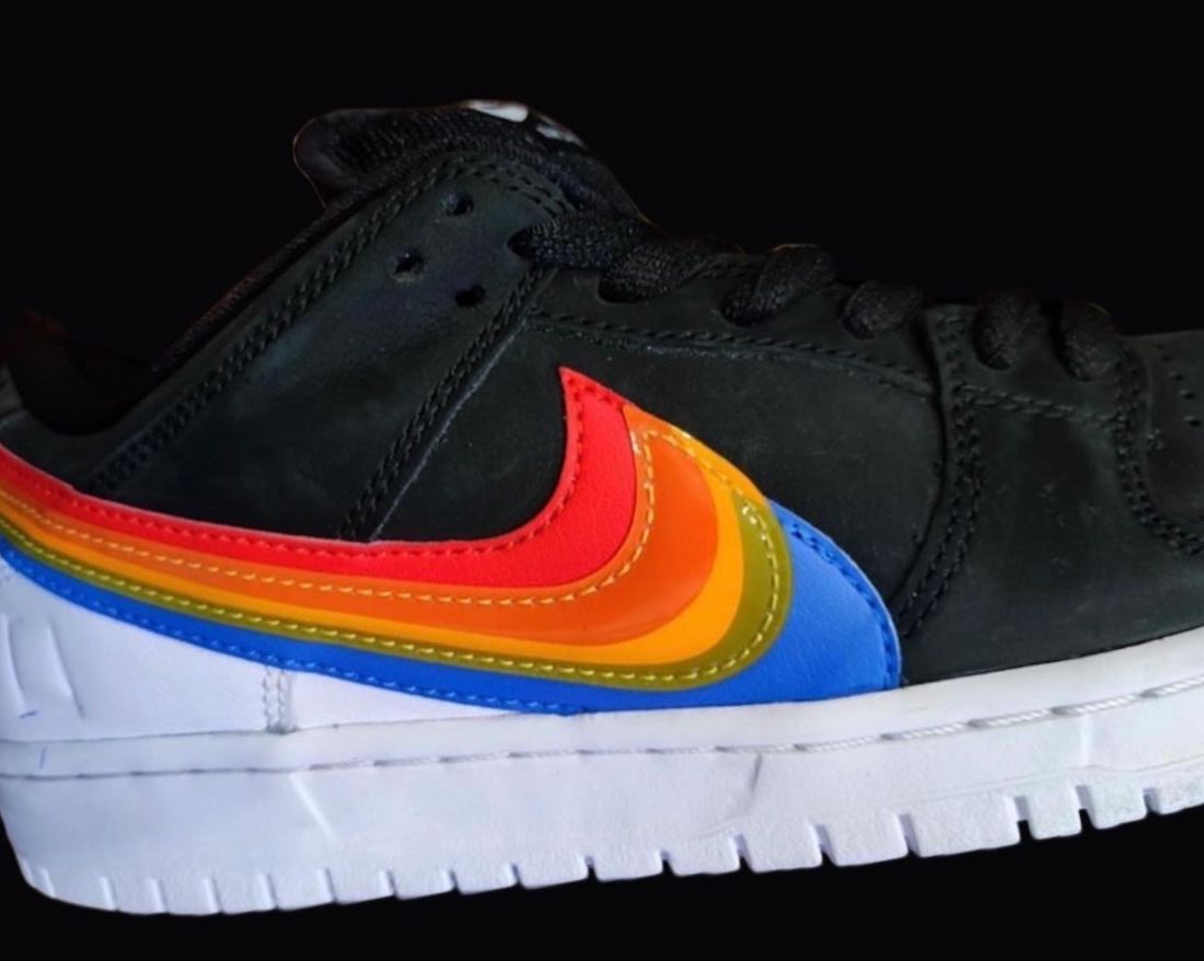 This Nike SB Dunk Low comes with Black leather across the base while White lands on the tongue branding, heel, midsole, and rubber outsole. Resembling Polaroidโs logos, we have Rainbow layered Swoosh logos on the panels consisting of Red, Orange, Yellow, Green, and Blue. Those same shades along with Nike SB and Polaroid branding appear on the insoles. Lastly, co-branding is spotted on the lace tips and heels.