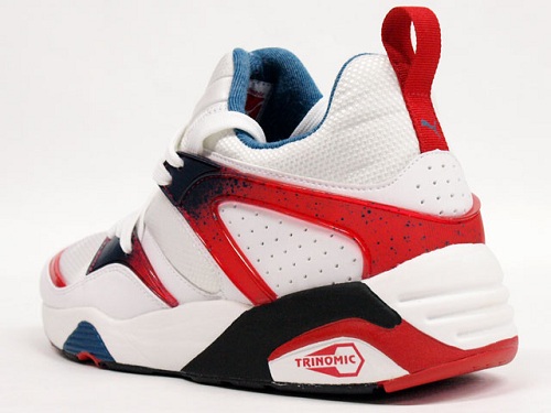 Puma recently made a splash with news of a revamped sneaker model- the Puma Sky Hi+. Now, for the holiday 2010 season, Puma has readied two more pairs of its classic Puma Blaze of Glory 91 training shoe. Pictured here is a pair of the Puma Blaze of Glory 91 in a predominantly white base with red and navy accents throughout. The second pair comes in a predominantly grey base with purple, yellow and black accents throughout. These have begun to be made available from select Puma retailers overseas and online.