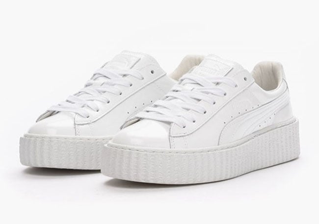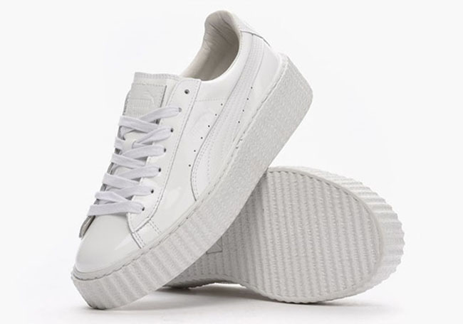 Images have yet to leak of the Puma Rihanna Creepers May 2016 releases, however Puma did take to Snapchat and shared some information. There will be a patent leather pair done in White, Black which is statin laced and the third will feature Green and Bordeaux.