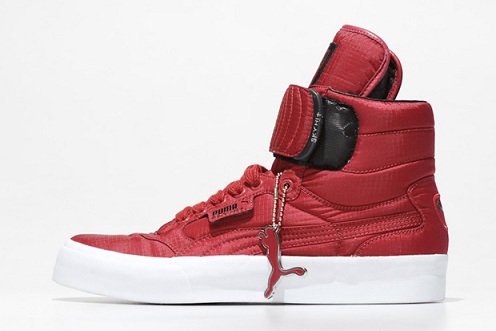 More than a week ago we brought you a look at the 2010 holiday lineup of the Puma Suede. Now we bring you news of an update to one of the brand’s basketball sneaker- the Puma Sky Hi, now named the Sky Hi+. Four colorways of the Puma Sky Hi+ collectively entitled “The List” have now released as part of the Fall 2010 collection. Some new tweeks include a heightened tongue and added ankle velcro strap. Moreover, different pairs consist of different materials along the upper, including croc skin, suede, nylon and leather. These are available now from select Puma retailers both in-store and online.