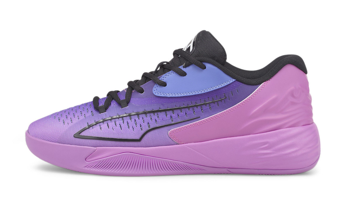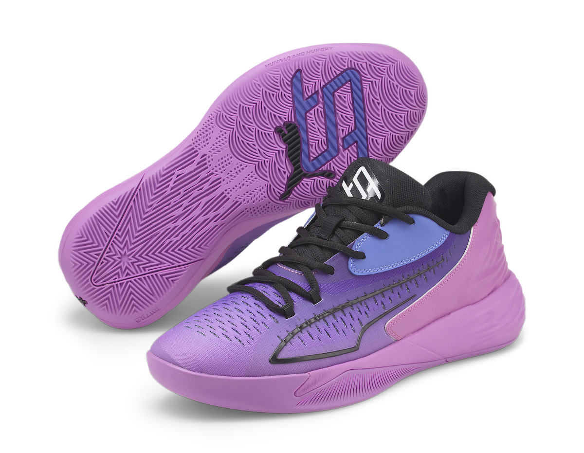 While the debut colorway, Quiet Fire, highlighted Stewieโs humble approach, the second drop flips the script to focus on the basketball starโs bold side. A purple gradient treatment with shades of violet and lavender embodies this boldness for an anything-but-reserved aesthetic. The sneaker features the same statement-making sculptural wraparound heel, intricate outsole, and delineated formstrip as the original, along with PUMA Hoops tech, including NITRO foam.