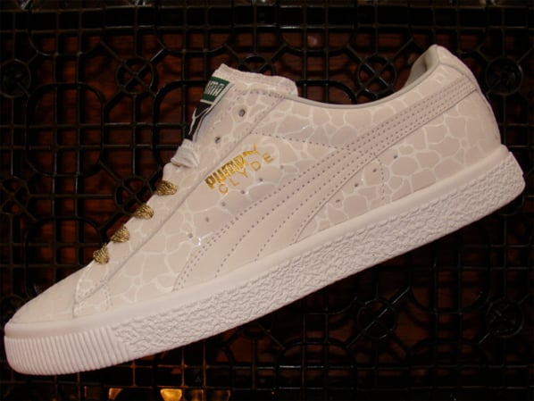 Puma has tagged up with UK based customizer Rob L to design 2 pairs of Clydes. Both pairs have differing colorways but the same base design. Both contain a pattern similar to a cement print as well as metallic gold laces. Both shoes are part of the Archipelago pack which is named after the greek word for a collection of islands. The shoes are only releasing at 8 retailers in the US. Via Major.