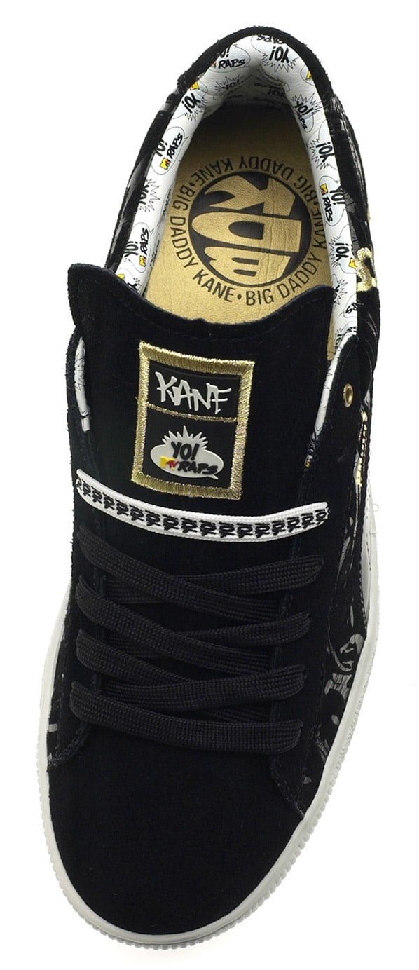 Big Daddy Kane was one of the first Hip Hop artists to have a pimp personality and this pair of Puma YO! MTV Raps will take inspiration from his style. The smooth Black uppers features a fat gold chain at the heel, hints of patent leather, BDK gold foil on the insole, and Kane on the tongue. Also a Puma Track Jacket and a Gold Chain T-Shirt will drop. The release date is September 15th 2007, via HB.